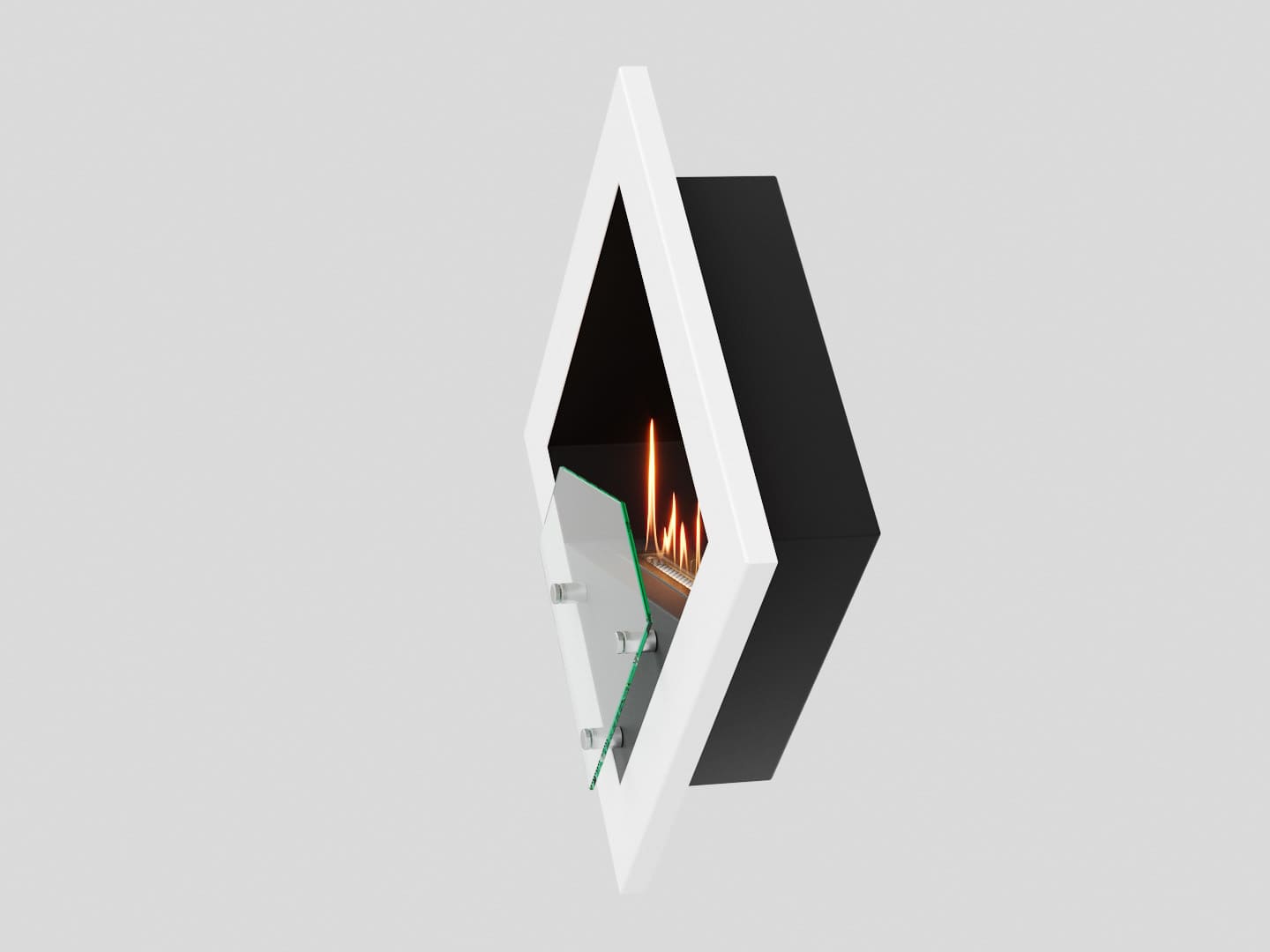 Представляет собой цельную металлическую конструкцию класса XS, создающую полузакрытое безопасное пространство для огня. Универсально подходит для встройки в нишу или подвеса на стену.